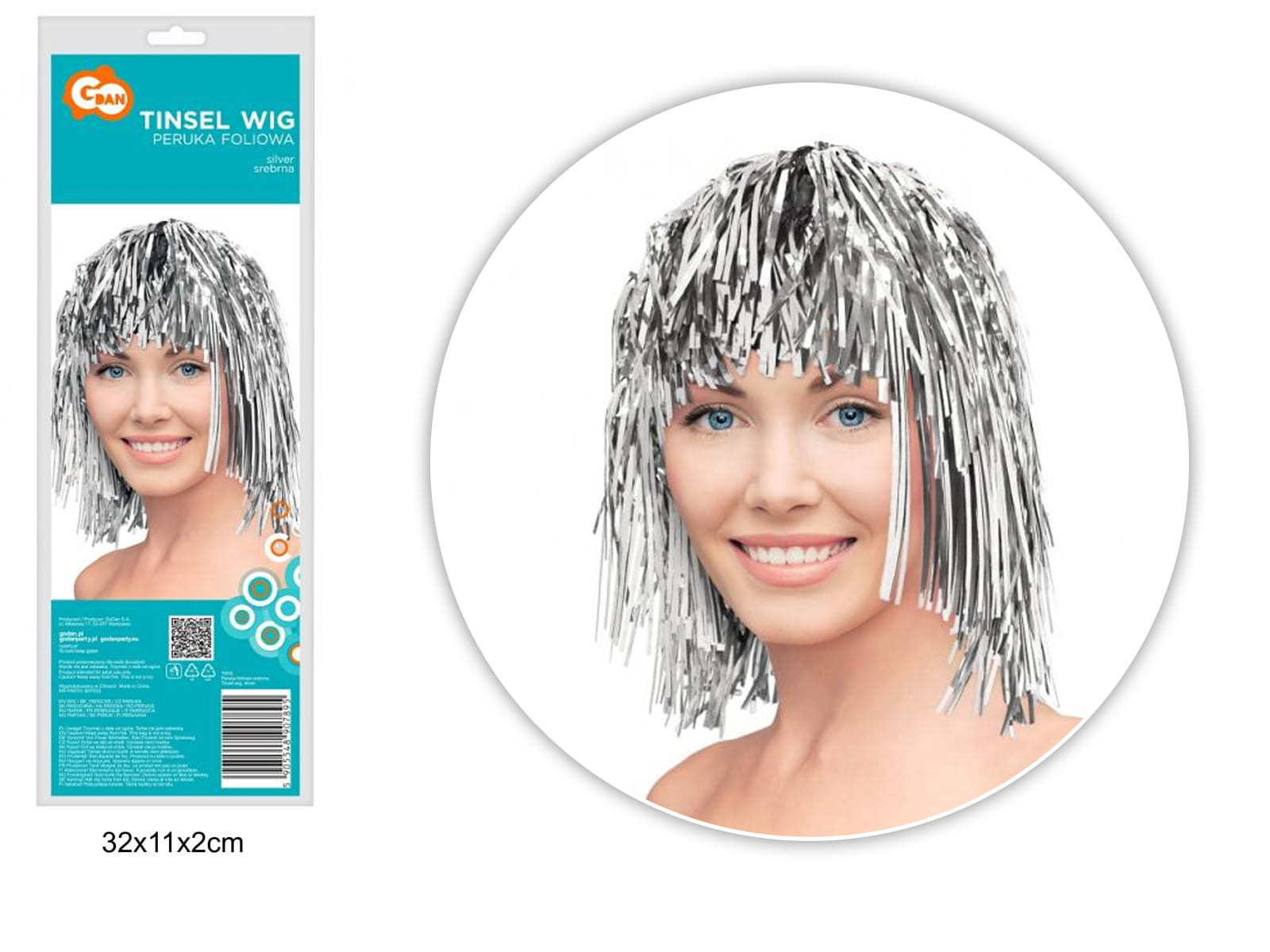 PERUKA FOLIOWA SREBRNA 34056