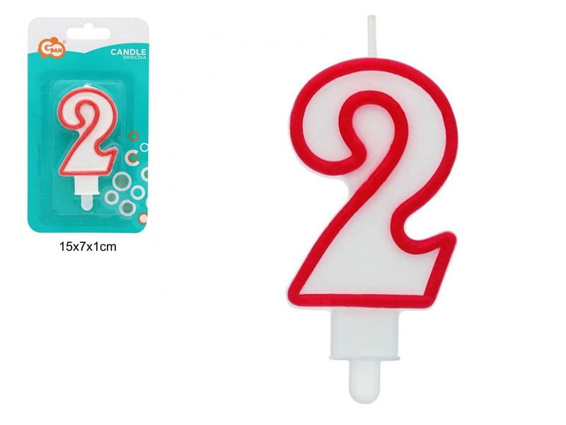 ŚWIECZKA CYFERKA "2" CZERWONY KONTUR 90159
